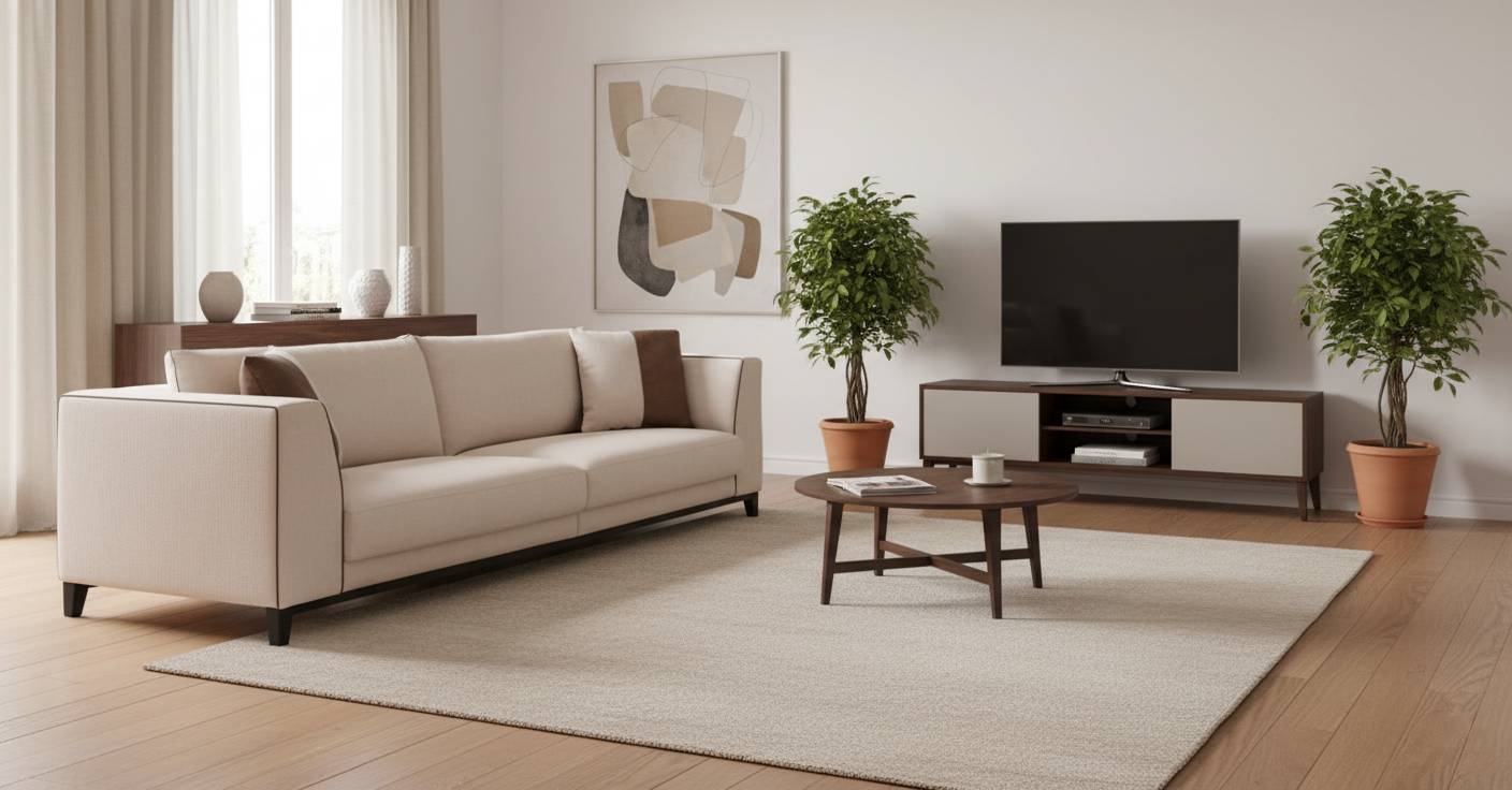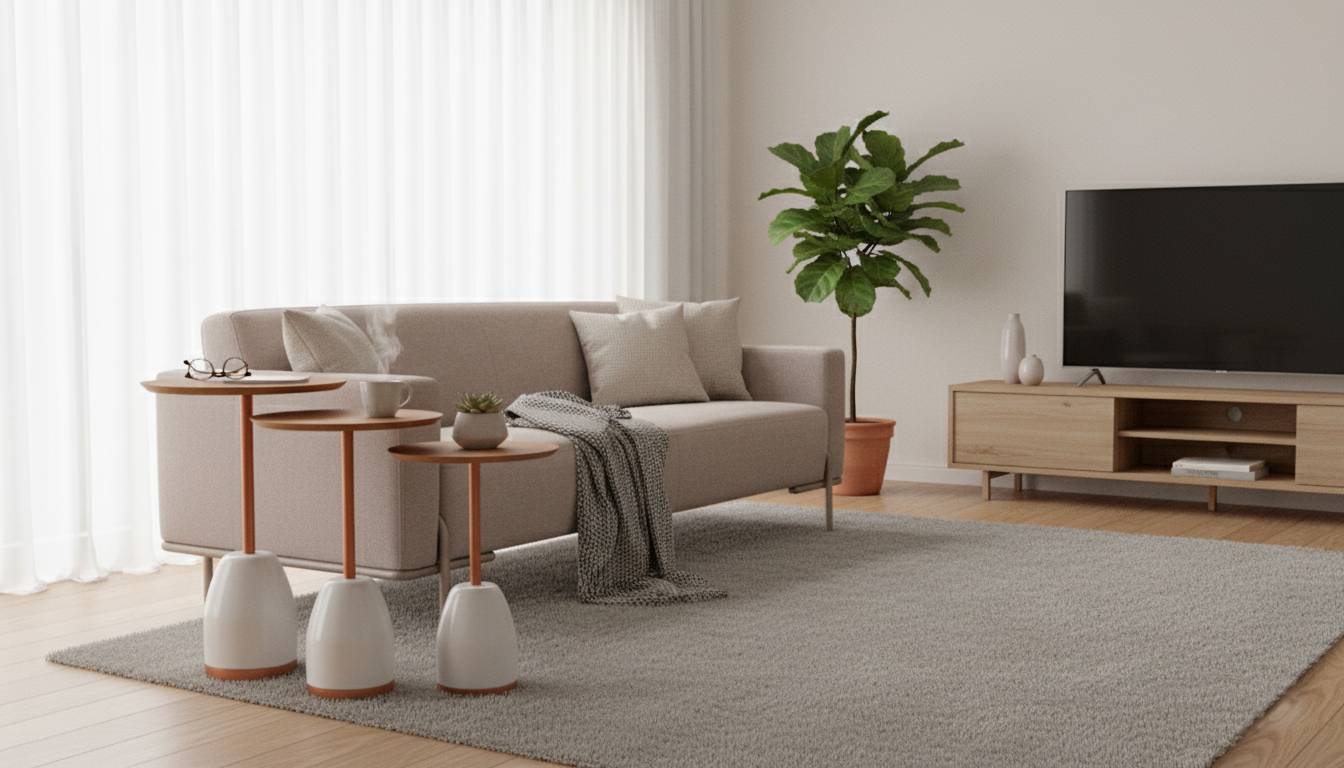 Materiais que têm presença: tecidos e madeiras que harmonizam com o bom gosto — e o uso diário.
